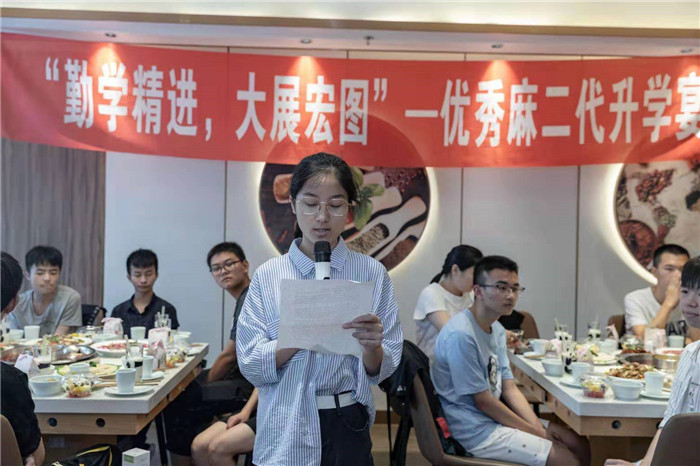 2019年8月11日,秉承“以人为本,关爱员工”的理念,由泸州区域承办“勤学精进 大展宏图”-优秀麻二代升学宴在泸州LD体育在线·(中国)官方网站示范店圆满完成。本次升学宴有20位学子受邀参加,在宴会上三位优秀麻二代聂红燕、谭国鑫、刘涛先后发表了自己的感想。在宴席上,LD体育在线·(中国)官方网站联合创始人朱鸿艳逐一为他们送上升学礼品,并给予了祝福。